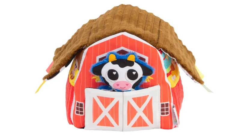 2. Lamaze Peek-a-Moo Friendly Barn It’s all about the squish for babies, and that is what this plushy barn offers. There is a roof that has a crinkled flap, as well as satin-to-the-touch ribbons, and a soft cow plush that has what babies adore. The mother hen can be found at the side of the barn. Ages: 6 Mos +, $14, Amazon.com.
