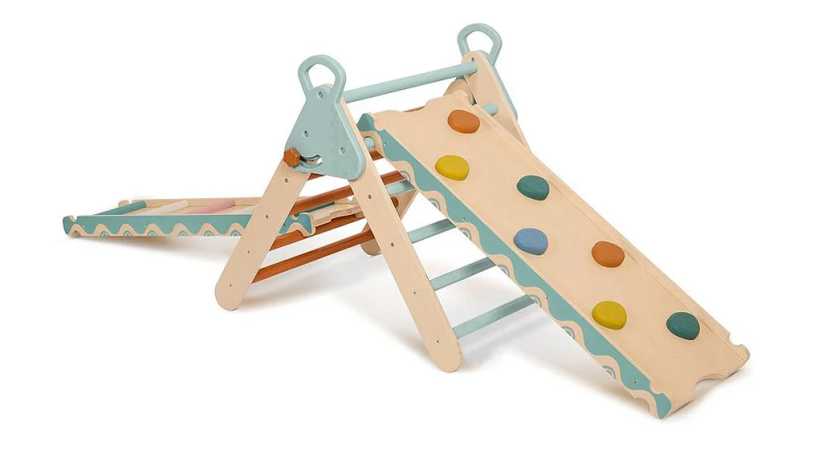 3. Wonderclimber Wooden Climber Dr. Emmi Pikler believed that babies flourished when given the freedom to explore. This wooden Pikler Triangle playset invites rich sensory and active play, giving kids a chance to feel different textures as they climb, balance, and explore. Age: 18 Mo +, $90, Target.com.