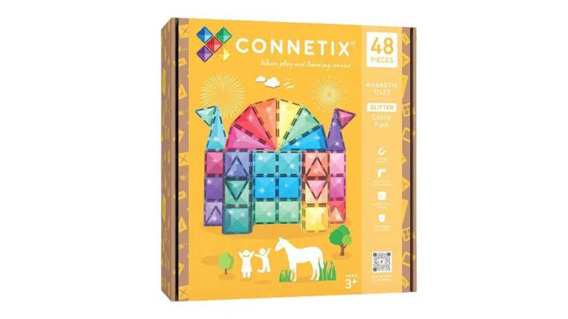 7. 48-Piece Glitter Castle Pack The beauty of magnetic tiles is by using imagination, kids learn about shapes, building, and how repetitive play offers adventure, no electronic tablets necessary! Age: 3+, $56, Connetix.com.