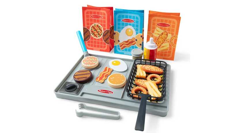 10. Flip & Fry Grill Play Set Kids can “cook” safely with this fun playset, which includes a grill, a griddle, and a fryer with water-based, color-changing food. Of course, there is a spatula, a fryer basket, and condiments, all for serving up some sumptuous play meals. Age: 3+, $27.99, walmart.com.