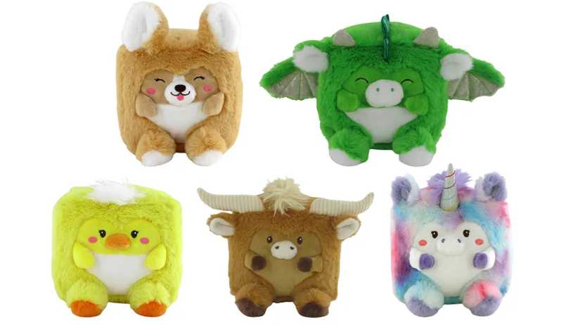6. Cutie Cubes These stackable, cube-shaped plushies come in multiple styles and won’t break the bank. Choose from four sizes ranging from 4 to 10 inches. Age: 3+, $3.99-12.99, Yooniquetoys.com.