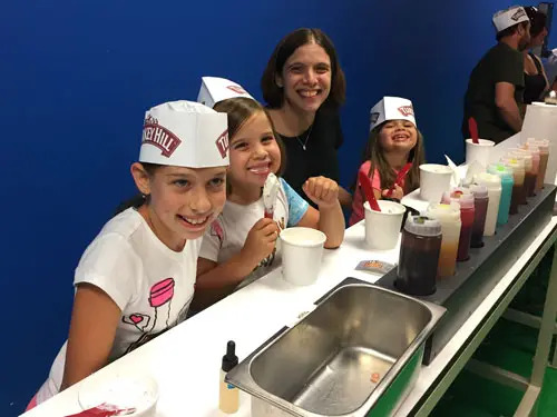 Our first stop was the Turkey Hill Experience, which features interactive exhibits and activities about the making of everyone’s favorite product: ice cream. The kids had fun, but let’s be real, the free samples were the star of the show–until we got to the Taste Lab, where staff members guide you through making your own flavor. Starting with a vanilla soft-serve base, you can choose what flavoring(s) and mix-ins (nuts, chocolate chips, cookie crumbs, etc.) to add. Not to brag, but my whole family agreed that my cinnamon apple crunch was the winner.