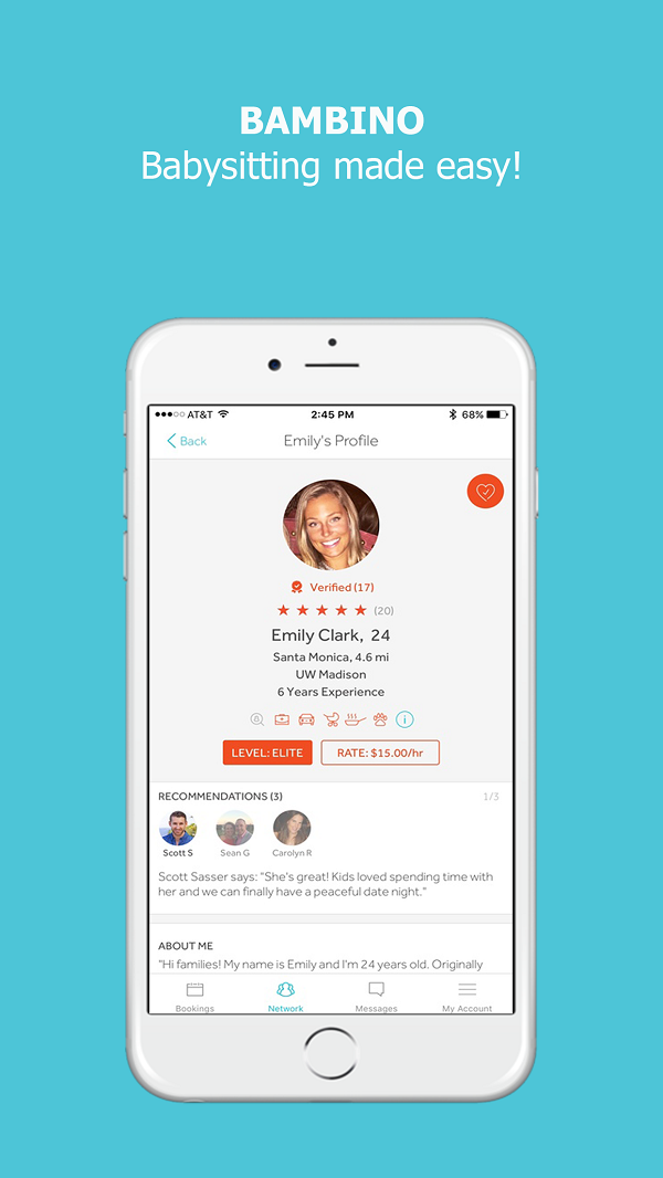 Bambino is a free, membership-based babysitting app that asks parents and sitters to login with Facebook to confirm their identity and connect with friends inside the app. Bambino then connects users with sitters that their friends recommend.