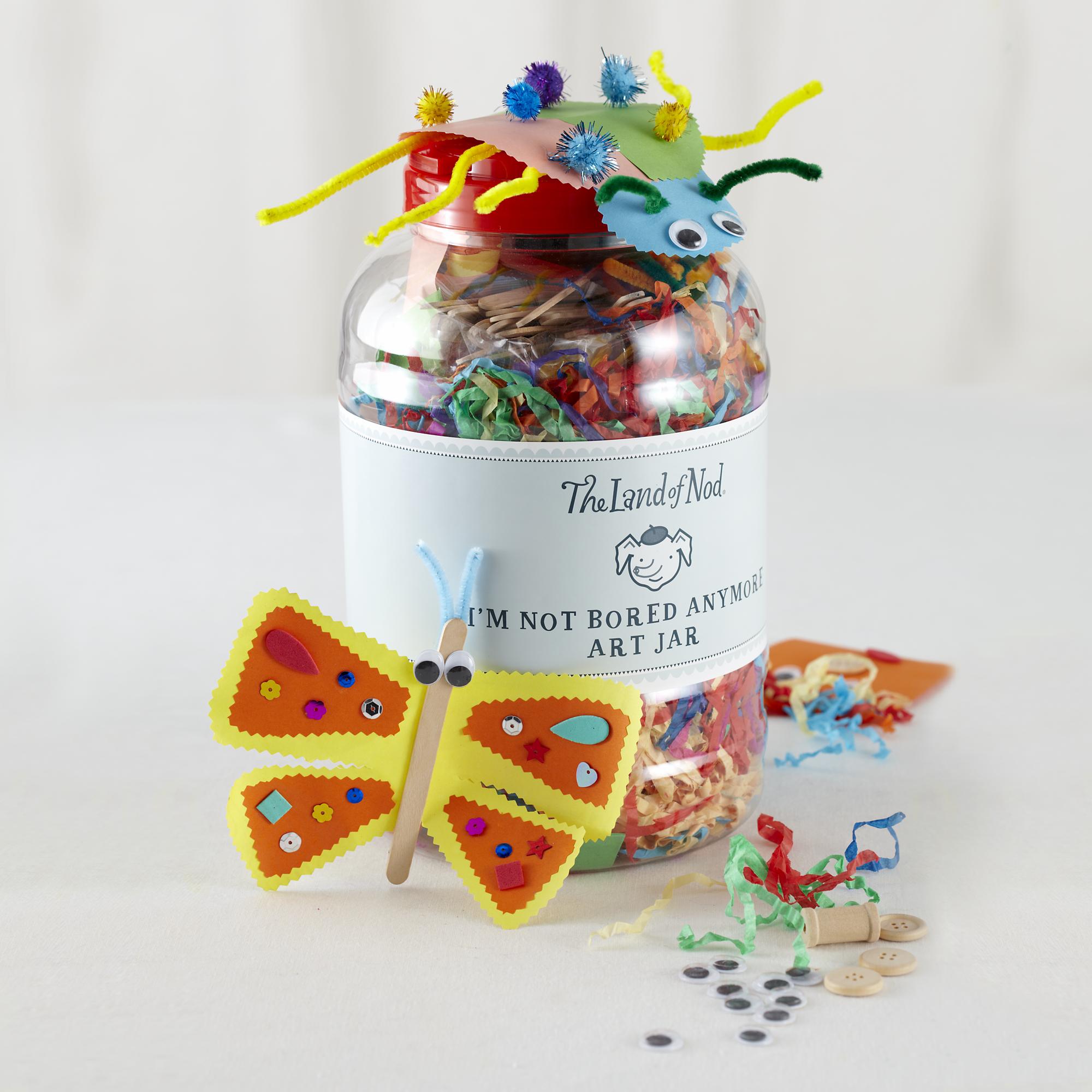 Keep craftsers forever entertained with Land of Nod’s I’m Not Bored Anymore Art Jar, brimming with supplies like googly eyes, glue pens, wooden buttons, and much more. $29, landofnod.com