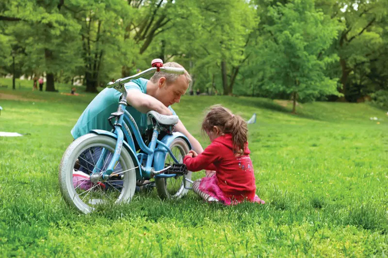 Look Out, World: Little Humans shows the variety of things kids can do, from playing the standing bass to sledding to helping their parents with projects—or perhaps playing baseball in a bowtie. |
