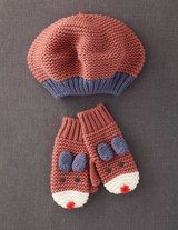 This delightful beret and mitten set by Boden is made from pure premium man-made yarn and, as a result, is comfortable and soft to the touch. The adorable pair, available in two colors (pink or brown stripes) will add cute and chic to any wardrobe.