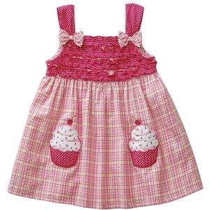 Girls will eat up this tank-top, square neck Youngland Plaid Cupcake Seersucker Sundress. A fun and stylish selection for birthday parties and playdates, this plaid and polka dot patterned dress is topped off with bow accents and ruching for a darling look. The cupcake-appliqued pockets will make shopping for your daughter’s school wardrobe a total treat. Your newborn can match her big sis as well, with a mini version that includes a plaid pair of bloomers!