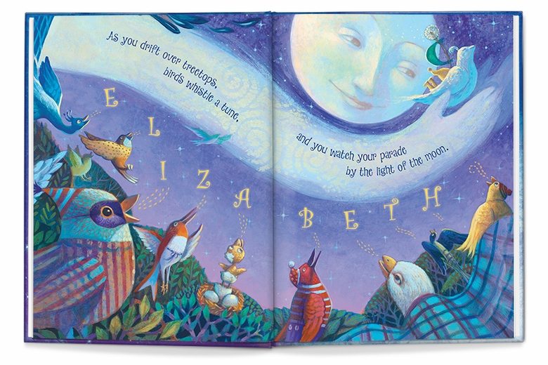 A lot of the color palette I used is a lot like the Harry Potter color palette…and the name is incorporated everywhere; I See Me really takes the time to get it right, like with digital coding. And they bring separate pieces of art together really well. So, they can choose the number of animals or flowers [on a page] based on the number of letters in the child’s name, so there’s a lot of care taken. I work really hard to get the color right, and when a book comes out it doesn’t look how it’s supposed to, I get really upset—but this company gets right.