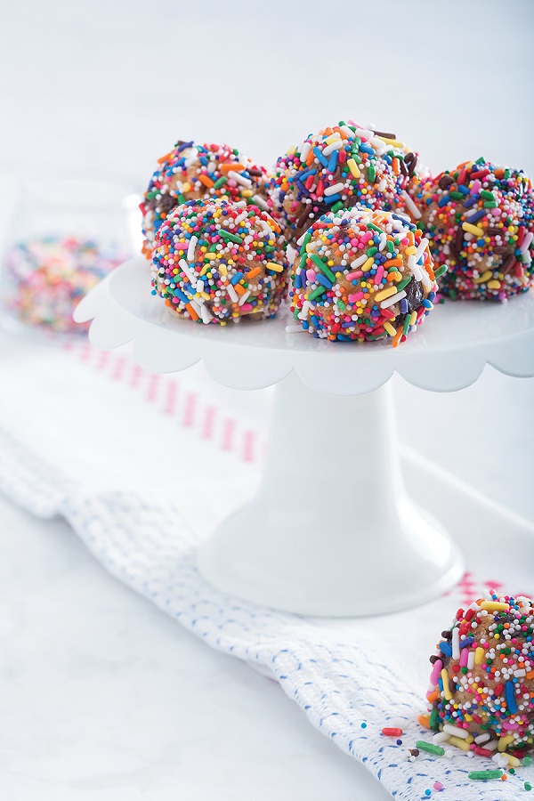 - Using hands, shape mixture into 1-inch balls. Roll balls in sprinkles and place on a cookie sheet.