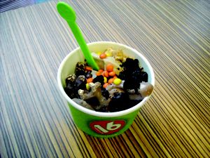 Sedutto calls its birthday cake ice cream one of its most popular choices, and it’s no wonder why. The ice cream, loaded with multicolored sprinkles and small pieces of white cake, will satisfy any sweet tooth. We stepped it up a notch by adding a pile of Oreo cookie crumbs on top, and if we closed our eyes, we thought we were eating cake and cookies. This is a hard ice cream selection, but that didn’t prevent it from being creamy. The ice cream stays solid for a while and didn’t melt significantly, even when we were almost finished with it. Other popular flavors at the shop, which also has a branch in Staten Island, include chocolate mint chip, cookies & cream, chocolate peanut butter hard yogurt and mocha chip fat-free hard yogurt. Sedutto even has an option for its older snackers: wine ice cream.
