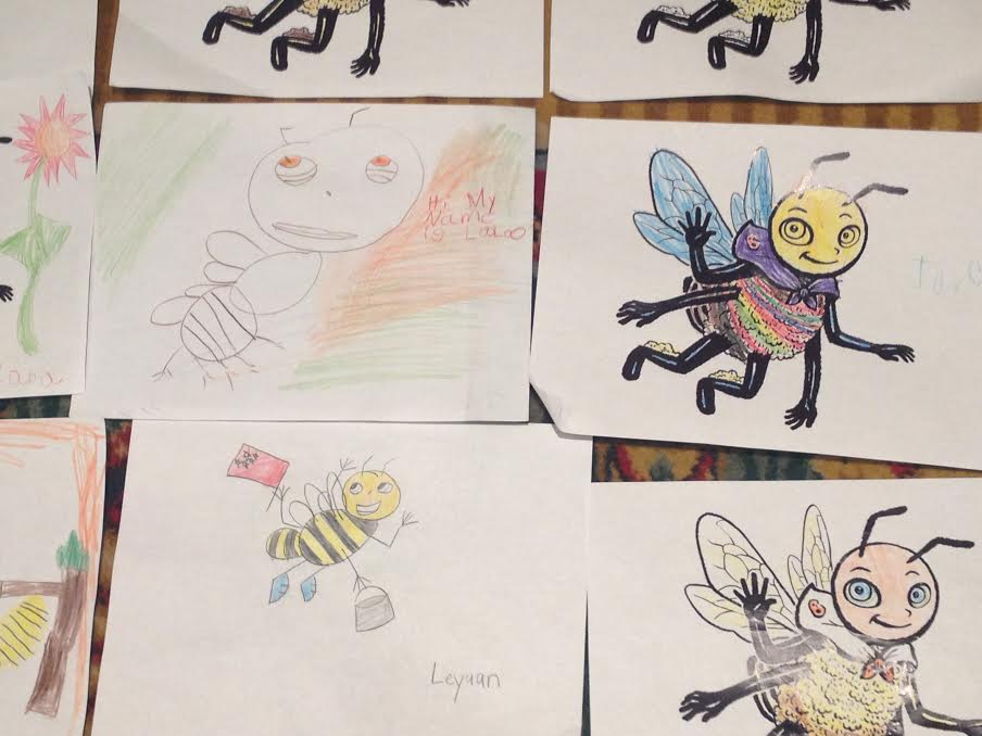 The morning began with a demonstration from the visionary behind Barclay, Olga Andreyeva, a senior illustration major at Pratt. With the aid of Photoshop and her trusty tablet, Andreyeva did several lightening-fast illustrations, causing kids to gasp as they saw the colorful characters from the comic brought to life. Ranging in age from 5-7, the children took inspiration from Andreyeva, using colored pencils and paper to create their own version of Barclay and adding in variations like a goofy striped shirt, fluttery eyelashes, and a rainbow face. The first issue of “Barclay The Bee” was then revealed and read aloud to the roomful of young Picassos.
