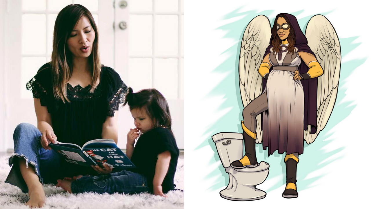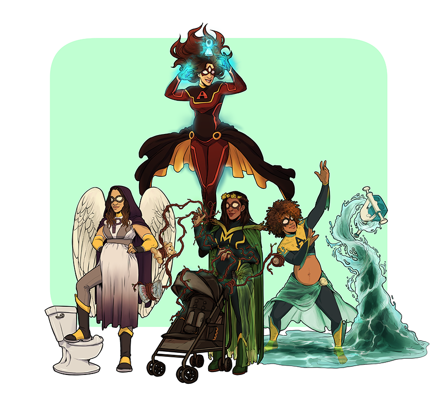 Featuring mothers from all walks of life, The M.O.M. Squad consists of four pregnant superheroes who are ready to take on any type of villain–whether the villain be potty training or bath time.