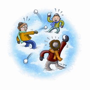 As the lunch party wound down, the room’s glass doors were opened onto the roof garden. The boys all spilled out onto it. Shouting and cheering, they scooped up the recently deposited snow. And they had a snowball fight.