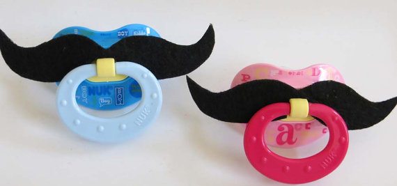 Mustache Pacifier: Your tot may be nowhere near growing facial hair, but doesn’t mean he or she can’t rock a fake ‘stache! The perfect combination of utility and adorableness, the handlebar mustache pacifier would make a great baby shower present. It even comes in “it’s a boy” and “it’s a girl” color options! $9, etsy.com