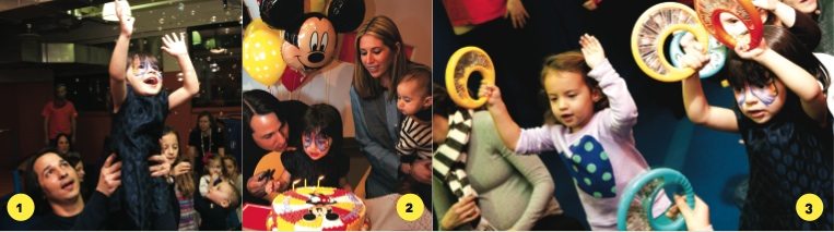 1. The Lonsteins do it right—it’s always bubbles galore at the best little kiddies parties. 2. Make a wish! The family gathers around the colorful cake as Gracie gets ready to blow out the candles. 3. Time to make some music. Look at those tambourines go. Photos by Heidi Green Photography, heidigreen.com