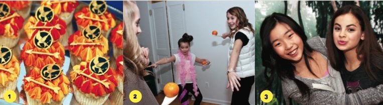 1. These cupcakes are on fire! Did Cinna decorate these gorgeous treats? 2. The guests test their skills in a challenge at this—you’ve guessed it—Hunger Games-themed bash. 3. Birthday girls Chloe and Samantha grin against a spectacular Games arena backdrop. Photos by Heidi Green Photography, heidigreen.com
