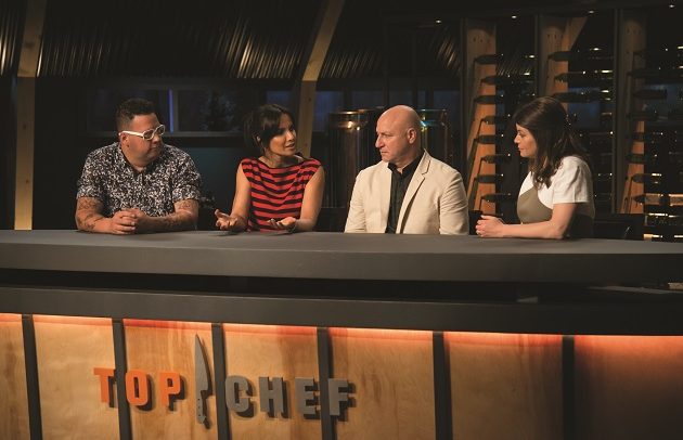 It’s hard, and every year brings a different challenge because my daughter is growing and her needs are different from year to year. When she first came on set she was six weeks old and she had to be nursed literally every two hours because I wasn’t making a lot of milk and I wasn’t able to get enough milk when I was expressing, which was really, really heartbreaking—and just from a health standpoint, there were challenges where I ate something and it not only upset my tummy but it would upset her tummy, too, because it would go through my breastmilk. I remember very clearly we were with Marcus Samuelsson in the DC season and we did a Quickfire Challenge with Ethiopian food and Injera bread. Marcus brought this beautiful bread and talked about how spicy Ethiopian food is and how it’s known for its stews—which I love, because Indian food is similar—and he really encouraged the chefs to go all out and make it spicy. They heeded his words, and both Krishna and I paid the price. But, she has grown up on set too. She’s 7.5 and she knows all of these people who have become part of her family—you know, Uncle Tom [Colicchio], Auntie Gail [Simmons]… But there will come a time when she won’t be able to be pulled out of school. Right now she’s just barely in second grade, but I can see a time just a couple years from now when [taking her out of school to travel with me] won’t be okay. We’ve been lucky, we’ve actually shot the last few seasons mostly in the late spring and early summer so she winds up just missing summer school… We’ve managed to make it work, and make it work beautifully, I would say.