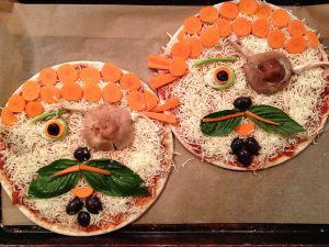 After making what I call “pirate portrait pies” for my son’s fourth birthday party, I got inspired by the endless possibilities of the pizza canvas. I determined the pizza wreath bagel a fun, festive snack for the whole family and holiday guests.