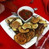 Kale & Eggplant Chips with Balsamic Ketchup Salsa