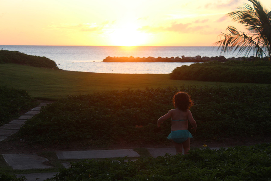 I arrive at the luxurious Four Seasons Nevis, where the smallest guests are treated like island royalty. In our room there is a glass door that opens outside onto green grass with views of the sparkling, blue ocean. Ahhhhh. I learn to shriek in the cutest possible voice to get Mommy and Daddy to go outside with me. Outside there are beautiful colored flowers everywhere and the smell of the air is sweet like mango and coconut. Vacation is making my senses go wild.