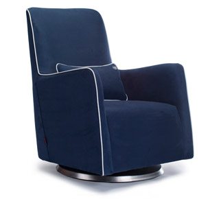 12. Chair: Grazia swivel glider, in navy blue with white piping, by Monte Design. $1,195, montedesign.net