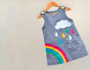 You won’t find anything quite like Jen Dimler’s clothing anywhere else. Unique, spirited, strikingly one-of-a-kind gorgeous. Just like designer Dimler says, these are happy clothes for little ones. You can’t look at this green corduroy skirt with bird pockets and not smile.